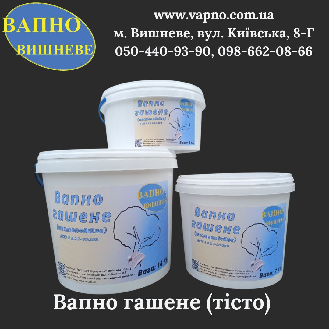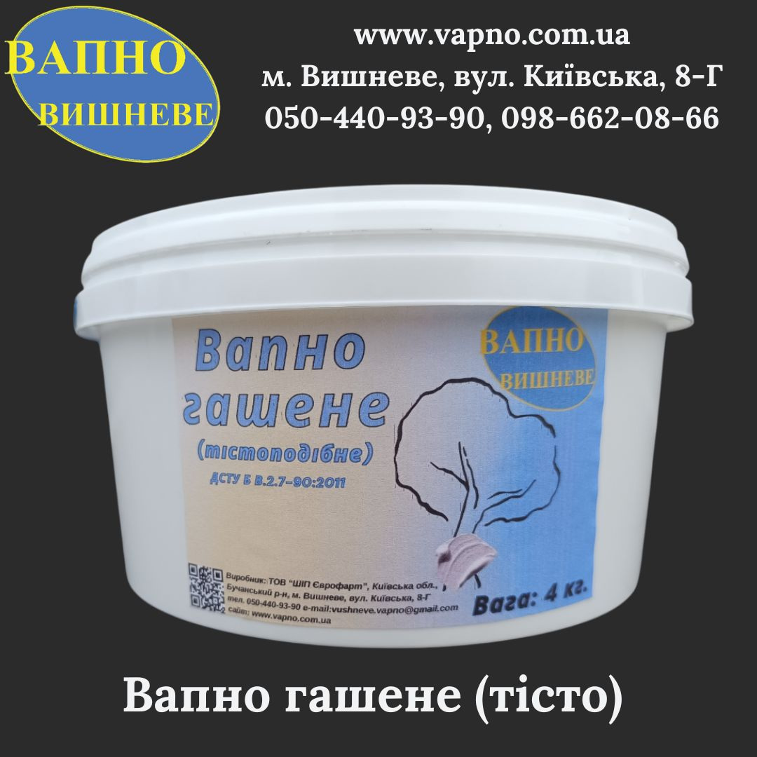 Детальні характеристики Вапно гашене (тісто) в відрі 4 кг.