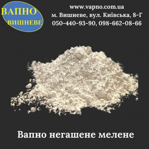- вапно негашене мелене високоактивне (вміст активних CaO і MgO - 84 - 86 % ) в мішках по 5 кг, 20 кг, 50 кг та в біг - бегах по 1,1 - 1,3 тн.